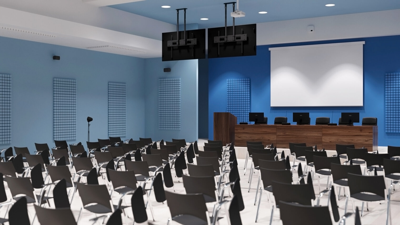Разработать однотипное решение, которое работало бы во всех 5 переговорных залах, и уложиться в рамки бюджета. Задача, которую поставил Заказчик, звучала следующим образом: «Все 5 переговорных залов требуется оснастить оборудованием для проведения совещаний по принципу «без бумаг» и др.